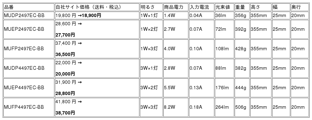 ※小型スポットの明るさ、灯数によって品番が変わります