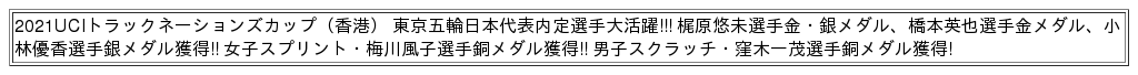 5月14日、中国・香港で開催されている2021UCIトラックネーションズカップの男子エリミネーションにおいて、東京五輪日本代表内定選手の橋本英也選手(岐阜・113期)が金メダルを獲得しました。